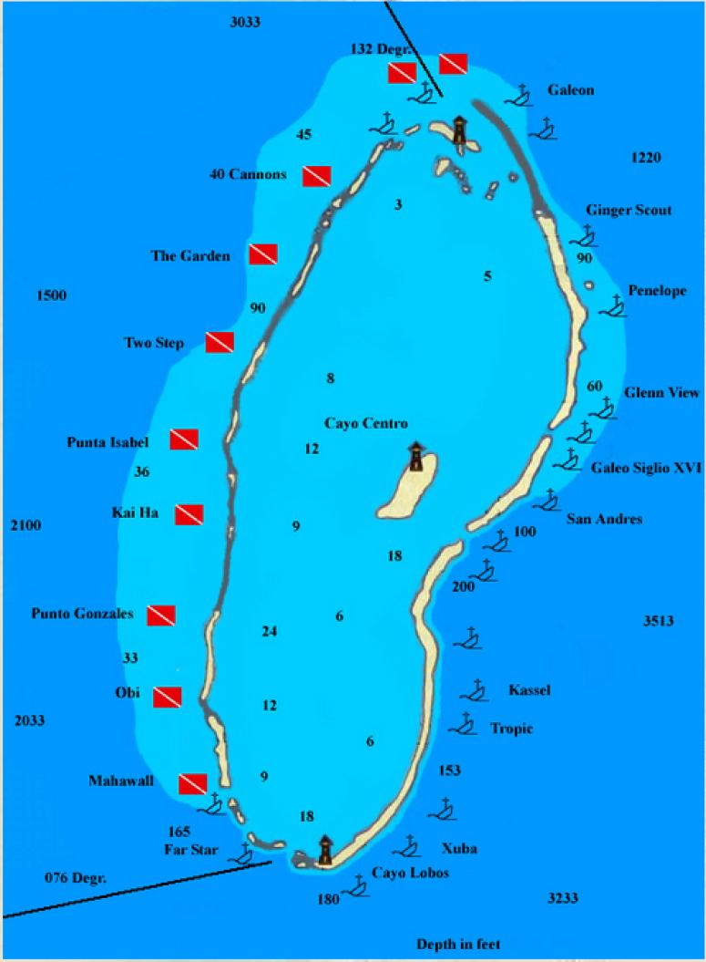 There over a hundred kilometers of coral walls, over a decene of shipwrecks, sand areas at the perfect depht for rays, conchs and lobsters.